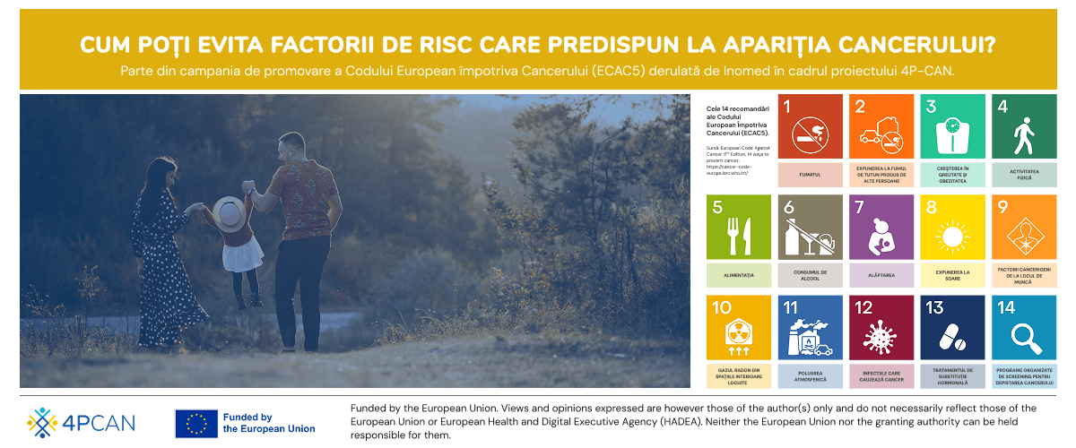 Cea de-a 5-a ediție a Codului European Împotriva Cancerului (ECAC5) își propune să echipeze cetățenii Uniunii Europene cu 14 recomandări cu privire la scăderea riscului de cancer. ECAC5 pune accentul pe importanța colaborării, comunicării și împărtășirii cunoștințelor preventive despre cancer cu cei din jurul nostru. Scopul este simplu, cu cât suntem mai bine informați, cu atât putem face alegeri mai bune pentru sănătatea noastră și a celor dragi.
